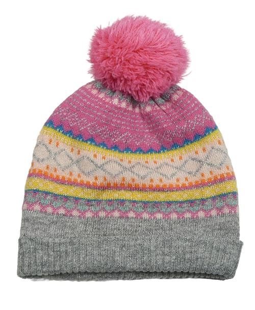 Sivo-svetloružová -ružová vzorovaná čapica s brmbolcom Next
