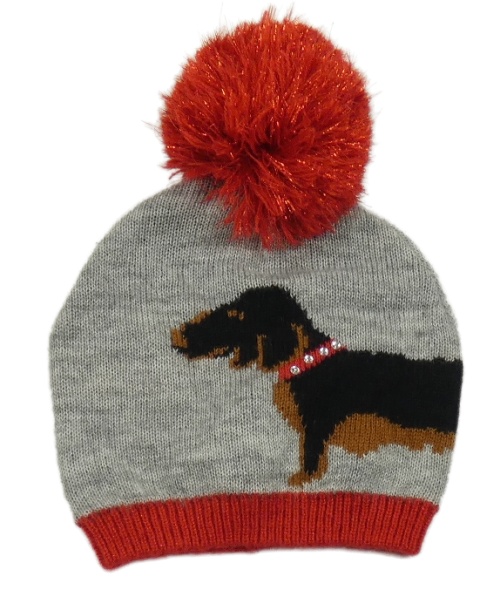 Sivo-červená čapica s jezevčíkem a brmbolcom