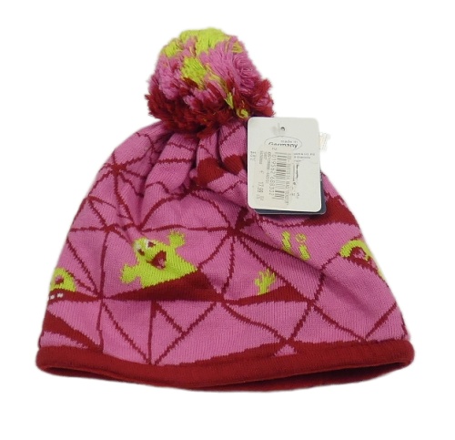 -Nové Ružovo-červená vzorovaná čapica s príšerkami a brmbolcom