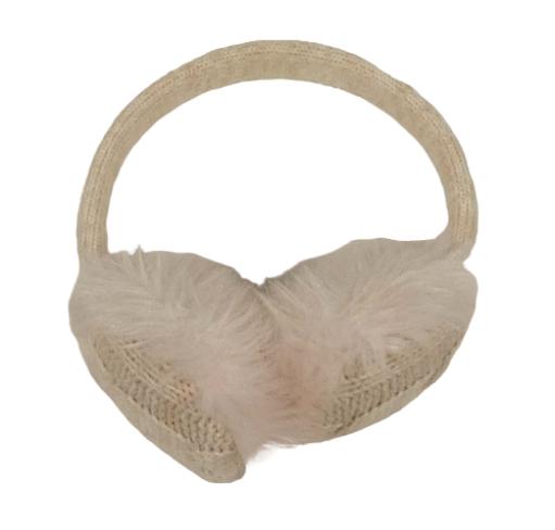 Pudrovo-světlerůžové pleteno/kožešinové klapky na uši