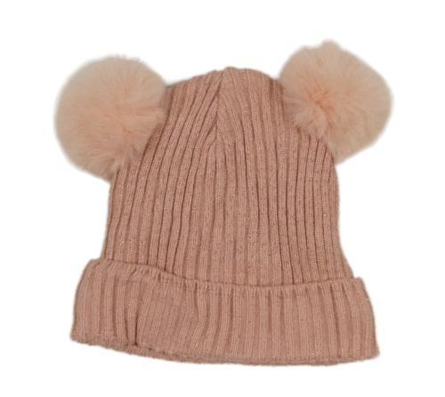 Ružová pletená trblietavá podšitá čapica s bambulemi