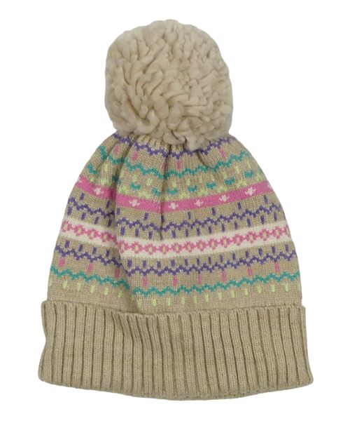 Béžovo-farebná vzorovaná čapica s brmbolcom M&S