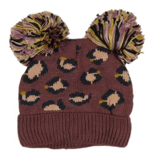 Vínová vzorovaná pletená čapica s bambulemi Next