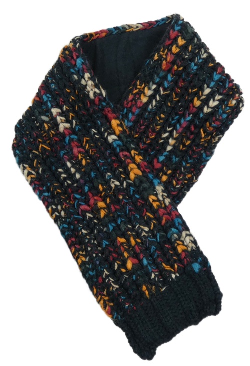 Tmavomodro-farebná melírovaná pletená šál