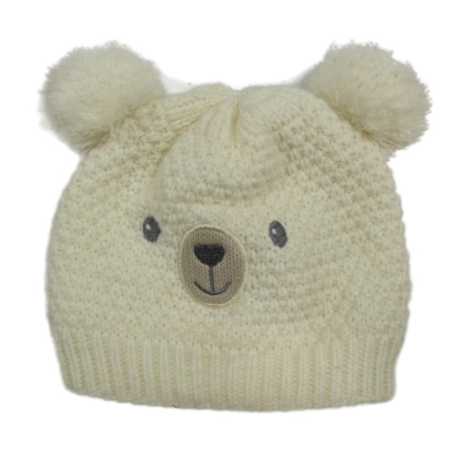 Smotanová pletená podšitá čapica s medvedíkom a bambulemi C&A