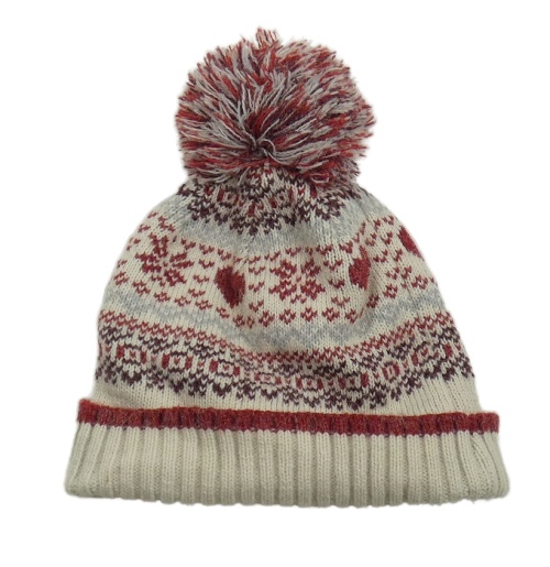 Béžovo-vínovo-modrá vzorovaná čapica s brmbolcom