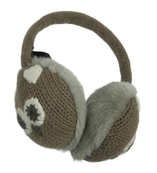 Hnědé pletené klapky na uši so sovami John Lewis