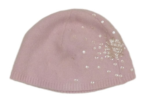 Svetloružová pletená čapica s flitrami
