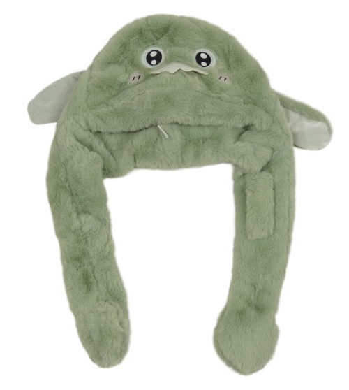 Svetlozelená chlpatá čapica s príšerkou