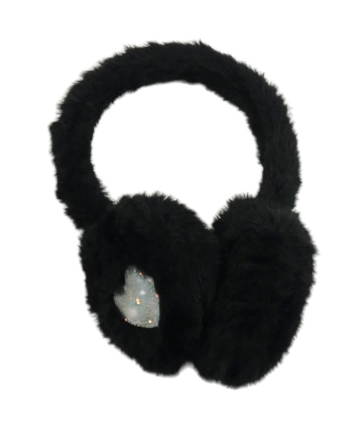 Černé kožešinové klapky na uši so srdiečkami s trblietkami