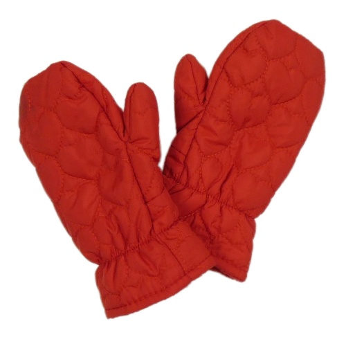 Červené prošívané šusťákové zimní palcové rukavice so srdiečkami H&M