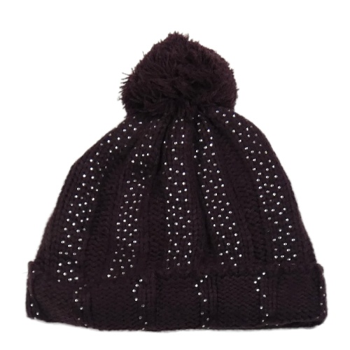 Mahagónovoá rebrovaná pletená čapica s kamienkami a brmbolcom M&Co