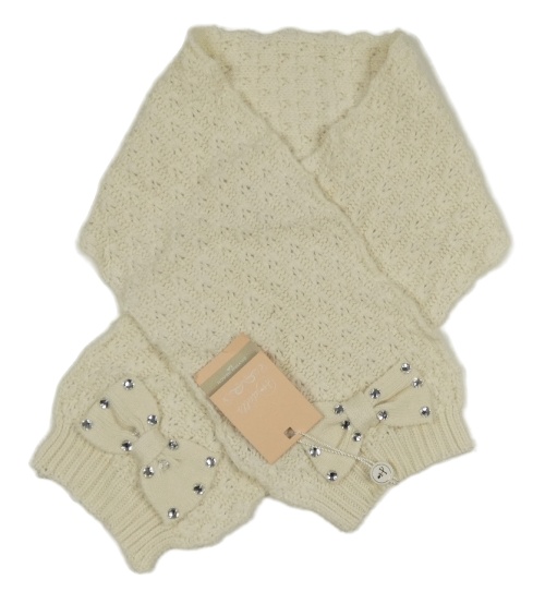 Nové - Smotanová pletená šál s mašlou a kamienkami Silvian Heach