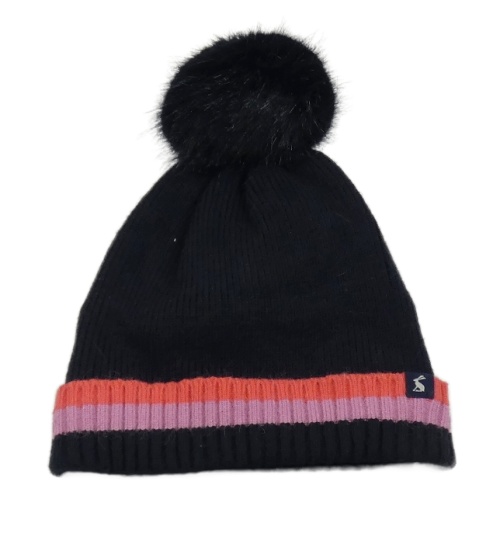 Čierna čapica s proužkem a brmbolcom Joules vel.98-122
