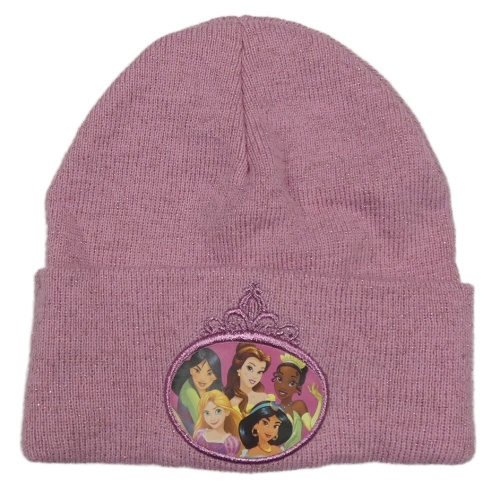 Ružová trblietavá pletená čapica s princeznami