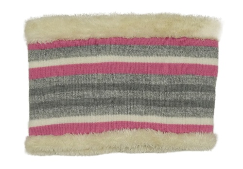 Šedo-růžový pruhovaný pletený zateplený nákrčník