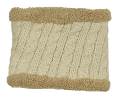 • Smetanovo-béžový žebrovaný vzorovaný pleteno/huňatý zateplený nákrčník