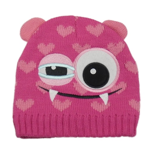 Ružová vzorovaná pletená čapica s príšerkou