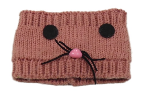 Ružová pletená čelenka s ňufáčikom