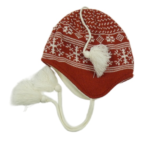Oranžovo-biela vzorovaná čapica s vločkami a strapcemi