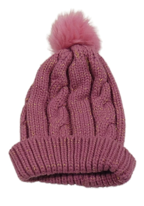 Ružovo-zlatá melírovaná pletená čapica s brmbolcom