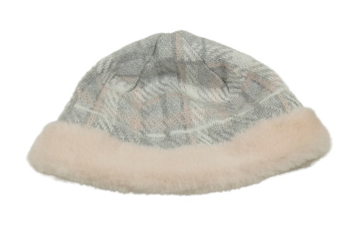 Sivo-ružovo-biela pletená podšitá čapica s kožúškom
