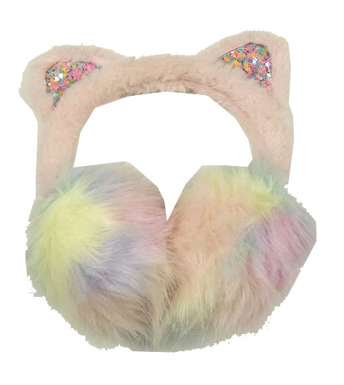 Růžovo-barevné kožešinové klapky na uši s uškami s flitrami