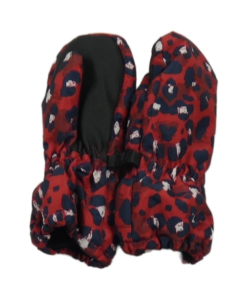 Červeno-tmavomodré vzorované šusťákové palcové rukavice