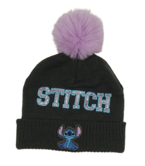Tmavosivá pletená čapica so Stitchem a brmbolcom