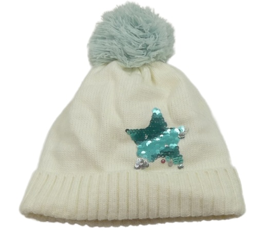 Biela čapica s překlápěcími flitre a brmbolcom Topolino