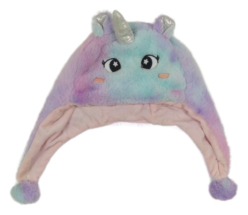 Světlemodro-lila chlpatá čepice - jednorožec