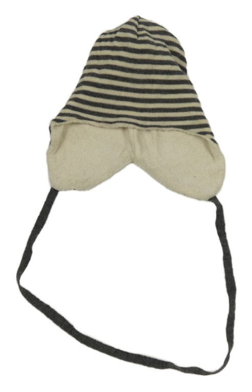 Tmavošedo-smotanová pruhovaná vlnená čapica