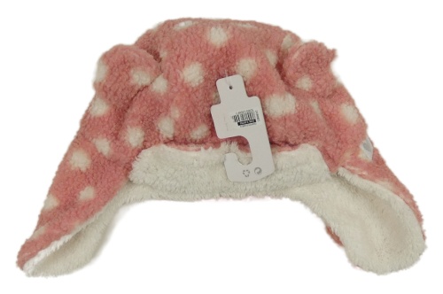 Nová - růžovo-bílá puntíkatá huňatá zateplená beranice s uškami St. Bernard