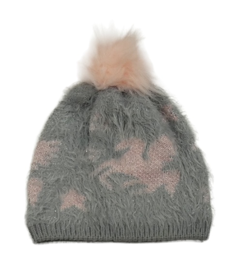 Sivá chlpatá trblietavá čapica s jednorožcami a bambulemi Matalan