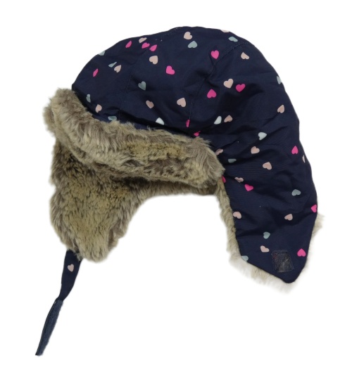 Tmavomodrá šusťáková zateplená beranice so srdiečkami a kožešinou H&M