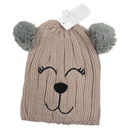 Nové - svetloružová pletená čapica s ňufáčikom a bambulemi