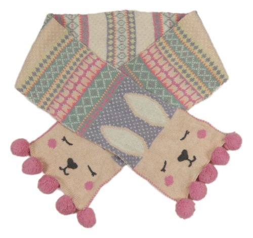 Farebná pruhovaná pletená šál so zajačikmi a bambulkami