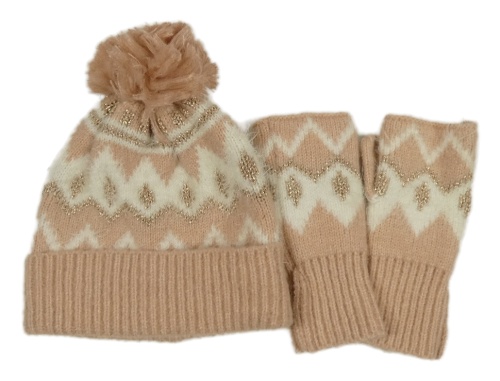 2set - Světlerůžovo-bílá čepice + rukavice Tu