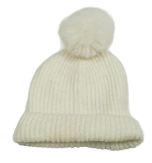Smotanová rebrovaná pletená čapica s brmbolcom