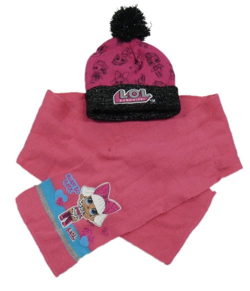 2set - Ružovo-čierna čapica s bambulí + šála - LOL