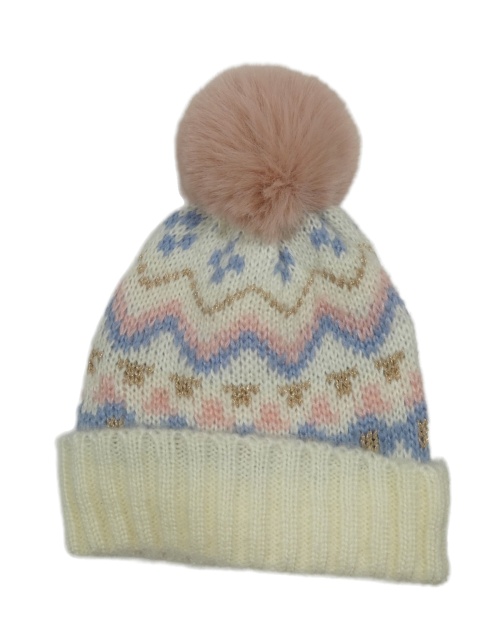 Bielo-modro-ružová vzorovaná čapica s brmbolcom