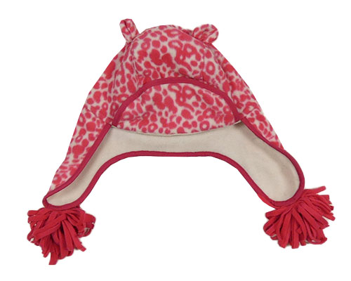 Bielo-tmavoružová vzorovaná fleecová čapica s uškami a strapcemi Debenhams