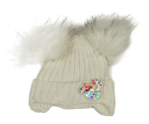 Biela vlnená podšitá čapica s Minnie a bambulemi