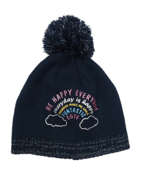 Tmavomodro-strieborná čapica s duhou z nápisů a obláčikmi a brmbolcom