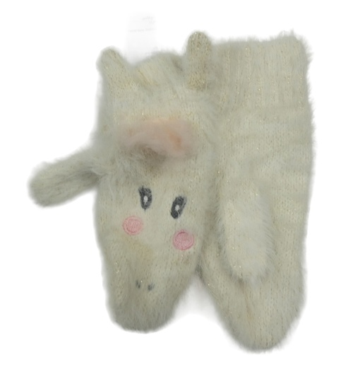 Smetanové chlupaté pletené palcové rukavice so zvieratkom Monsoon