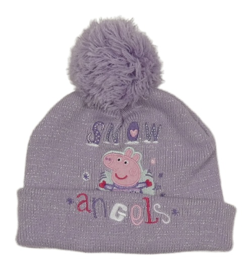 Lila trblietavá pletená podšitá čapica s Peppou a brmbolcom