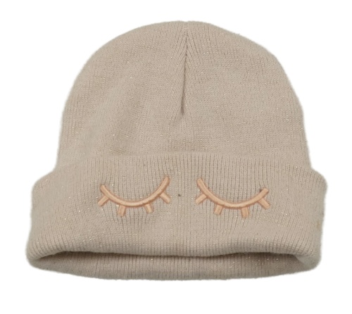 Světlepudrovo-zlatá melírovaná pletená čapica s řasami