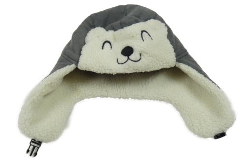 Šedá semišová zateplená beranice s čumáčkem medvídka