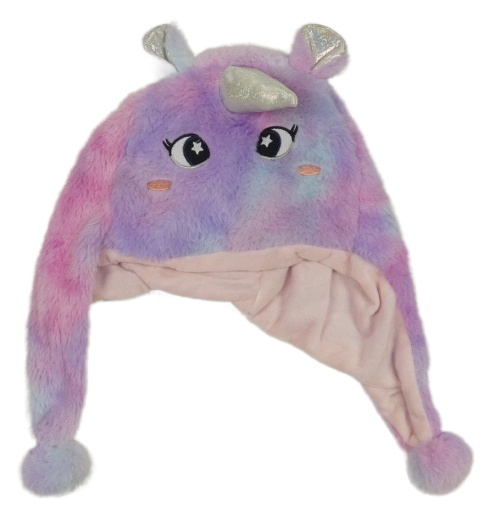 Fialovo-ružovo-svetlomodrá chlpatá čepice - jednorožec