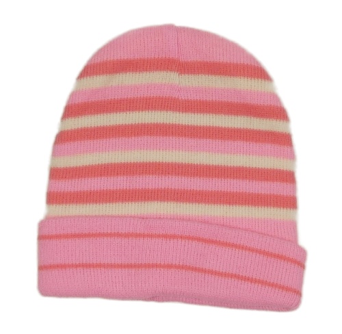 Neónově ružovo-smotanová pruhovaná pletená čapica